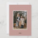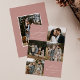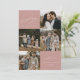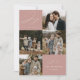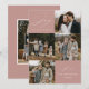 Cartão moderno de férias com a frase "Alegria para o Mundo" em elegante letra cursiva branca com um fundo rosa poeirento. A frente do design apresenta 4 das suas fotos favoritas da família organizadas em um layout de colagem. Personalize a frente do cartão de férias com várias fotos com o nome da sua família e o ano. O cartão reverte para exibir uma foto adicional.