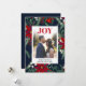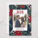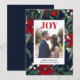 Alegria escrita Natal chique padrão verde vermelho com flores de poinsétia, azevinho aquarela, adicione sua foto para enviar seus cumprimentos de férias e Natal.