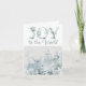 Cartão de Natal personalizado de floresta nevada em aquarela com letras decorativas em tons suaves de azul e verde. A inscrição diz "Alegria para o Mundo" e você pode personalizar o texto restante com seu próprio cumprimento festivo e nome(s). Design sutil e elegante em aquarela com tipografia ornamentada.
