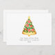 Ilustração de uma fatia de pizza em forma de árvore de Natal com coberturas vermelhas e verdes cobertas com uma estrela. Personalize o nome e o ano.