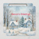 Um delicado azul pastel domina a cena da floresta de inverno, com duas cabanas no inverno, neste cartão de Natal que envia "Saudações da Época". Personalizado no verso com seu nome, é um verso adequado para os feriados.