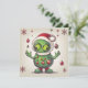 Cartão De Festividades Alienígena Verde de Natal Engraçado