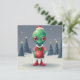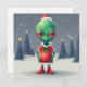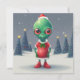 Cartão De Festividades Alienígena Verde e Árvores de Natal engraçadas