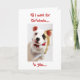 White puppy with red collar and bells looking up: "All I want for Christmas is you"., Inside: "I luv you" Photography by Maria Santos (Lusinhas do Sul)