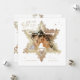 Elegante estrela de Chanucá de David, foto de Hanukkah, com um elegante design de tipografia "Love Joy Light" em ouro falso. Estrelas de ouro espumantes criam a estrela de David com um espaço para fotos colocado dentro da estrela de David. O verso apresenta uma elegante estrela estrelada e giratória de David design. Trabalho de arte por Moodthology Papery.
