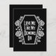 Este design apresenta uma estética gótica com uma estrutura em forma de caixão branca e negrito. Dentro, a frase **"Love Me Like My Demons Do"** é escrita em letras impressionantes no estilo gótico. Ao redor do caixão estão rosas e folhas brancas detalhadas, acrescentando um toque romântico e dramático escuro à trabalho de arte.