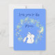 Um casal de coelhinho se senta sob a lua brilhante, sussurrando doce, eu te amo até a lua e de volta. Carteira adorável para o Dia do Namorados, aniversários ou qualquer dia que você queira dizer que eu te amo.