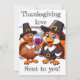 Este cartão pode ser usado para convidar as pessoas para a sua mesa neste Dia de Ação de Graças ou para enviar o seu amor enquanto elas não estão à sua mesa. Cartão de Dia de Ação de Graças de desenho animado divertido é o que precisa e será recebido com carinho com aquele peru amigável levantando um copo de vinho.