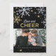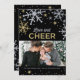 O design da foto cartão de férias festivas apresenta flocos de neve cintilantes de prata e ouro e a frase "Amor e Alegria" com texto personalizado e uma imagem que pode ser personalizada. A borda de flocos de neve e a escrita têm uma aparência de brilho texturizado em um fundo preto.
