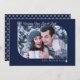 O moderno design do cartão com fotos Chanucá dos Partidos Temáticos apresenta um pano de fundo azul marinho para o seu conjunto de fotos de feriado favorito em uma forma retangular geométrica moderna com dois cantos arredondados. O verso é uma estrela de David com um padrão branco e marinho azul. Mude "Desejo que Ame & Luz" para a sua saudação favorita de Hanukkah. #Hanukkah #Holidays #HanukkahCards