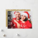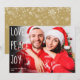 Um cartão de Natal moderno com a sua foto favorita e o nome da sua família e data em tipografia moderna clássica sobre uma mensagem de amor paz alegria em escrita chic. Criado por Thisisnotme©
