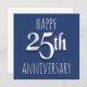 Design de 25 de aniversário de prata sobre um fundo azul de couro azul.