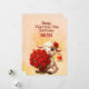 Um cartão de aniversário personalizado para alguém que faz anos no Dia dos Namorados. Um cordeiro branco fofo apresentando um grande buquê de rosas vermelhas na frente e um hamsterzinho fazendo o mesmo no verso.