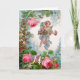 CARTÃO DE FESTIVIDADES ANJO ROMÂNTICO COLHENDO ROSAS E FLORES ROSAS
