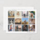 Mande um alegre feriado com um cartão de Natal plano "Ano em Revisão" moderno, com doze fotos quadradas em uma simples colagem. No topo à esquerda está o ano soletrado e no fundo à direita está a mensagem, "Que Ano!". A parte de trás tem uma modelo para você adicionar sua mensagem personalizada a preto sobre um fundo branco. Esta é uma forma excelente de atualizar todos os seus amigos e familiares sobre as memórias que você fez no ano passado.