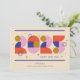 Receba o Ano Novo com este design geométrico atraente que apresenta o ano "2025" em cores vibrantes. Com sua estética moderna e ousada, este cartão é perfeito para celebrar o ano novo com estilo e elegância.