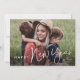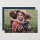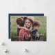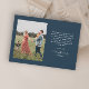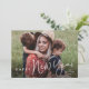 Cartão de Feriado de Ano Novo Simples de Script Moderno com fonte manuscrita e foto de retrato sangrado de cheio na frente com nome de família. O verso tem uma segunda foto com uma mensagem de feriado da família. Clique no botão editar para personalizar este design.