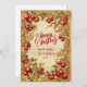 An ornate Victorian-style Christmas invitation featuring rich red poinsettias, swirling gold filigree, and festive holly accents. The aged parchment background enhances the nostalgic charm of the season, creating a timeless piece perfect for elegant holiday gatherings or Christmas dinner parties.