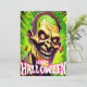 O design de Halloween de zumbi parece realista e grotesco, e o fundo verde cria uma sensação de ameaça.