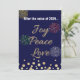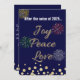 Este cartão de férias moderno é a forma perfeita de enviar uma saudação sincera e não fotográfica para esta estação. A frente apresenta um fundo de marinho na moda com fogos de artifício festivos e uma mensagem poderosa: "Depois do barulho de 2025... Que seu feriado seja cheio de Joy, Peace, Love." O verso foi projetado para uma mensagem pessoal e seu nome familiar, terminados com uma sutil dispersão de ouro confetti para amarrar ao sentimento comemorativo. É um cartão limpo e único para enviar uma mensagem séria neste Natal.