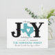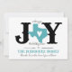 Desejar alegria para amigos e família do tamanho do Texas nesta temporada de férias é fácil com este design. O "O" de alegria é substituído pela forma do Texas com um coração cortado do centro. Letra no estilo ocidental em conjunto com texto escrito à mão. Personalize a frente com seus nomes familiares e as costas com sua foto favorita. Design permite que você escolha suas próprias cores. Vem em vermelho, verde, azul, lavanda, aqua, marrom, laranja queimado, ouro e prata. Produtos correspondentes disponíveis.