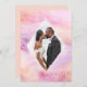 Celebre seu amor com a família e amigos com este cartão com fotos de feriado moderno. Ele apresenta um fundo de aquarela cor de pêssego, rosa e roxa e agata e um belo quadro de foto de diamante desenhado à mão. Perfeito para a noiva e o noivo compartilharem sua foto favorita de casamento. Personalize esta placa simples com o seu nome personalizado, saudação, ano e fotografia vertical personalizada na frente. Escolha entre uma grande variedade de tipos de papel. Selecione a placa retangular em forma de 5" x 7" ou adicione uma forma de borda recortada. Itens correspondentes estão disponíveis.