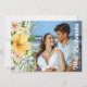 Estes cartões de Natal Mele Kalikimaka para foto de férias aquecerão o coração de todos para quem você os enviar nesta época de festas. O design apresenta uma fotografia quadrada de sua escolha decorada com coloridas flores havaianas exóticas e folhagens tropicais.