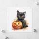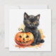 Cartão De Festividades Aquarela Halloween Gatinho Preto e Abóbora