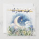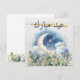Cartão De Festividades Aquarela Lua Vegetação Dourada Eid Mubarak Árabe