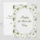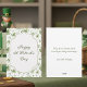 Envie uma bênção irlandesa genuína! Este lindo desenho de trevo em aquarela, apresentando belos trevos macios em aquarela, detalhes delicados em espiral e elegante escrita verde, é a maneira perfeita de desejar aos amigos e familiares um Feliz Dia de São Patrício. Inclui uma mensagem personalizável emocionante: "Que a sorte dos irlandeses esteja com você hoje e sempre!" e assinatura personalizável no verso.