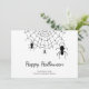 Cartão postal simples de férias em preto e branco, com um design de aranhas góticas e letras de tipografia personalizáveis em preto. Ótimo para enviar desejos assustadores neste Halloween.