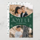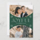 Deseje aos entes queridos uma feliz temporada de festas enviando-lhes um cartão de festas de tendências projetado por Late Bloom Paperie! O cartão de feriado exclusivo apresenta duas dentro de fotos de um quadro verde de fotos em arco oval. "Joyful" é exibido em letras brancas modernas, acentuadas por flocos de neve desenhados à mão. Personalize a frente do Cartões de foto de Natal adicionando seu nome. A parte de trás do cartão de feriado multifoto mostra um padrão verde de floco de neve.
