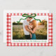 Este é um Cartão de Férias de Natal Red Gingham, Arco Branco Verde!