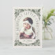 Um cartão de Natal único e moderno com uma forma de foto em arco e tipografia estilizada moderna que se curva elegantemente em torno da sua foto, e uma ilustração original de folhagem de inverno desenhada à mão. Personalize facilmente a frente e o verso com seu próprio texto e fotos usando o modelo fornecido. Para personalizar ainda mais, clique em "Editar usando Design para Ferramenta". Sinta-se à vontade para me enviar uma mensagem para quaisquer pequenas alterações, saudações personalizadas ou alterações de cor. Compre mais cartões de Natal únicos em www.zazzle.com/store/nbpaperco