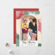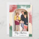 Este cartão de Natal apresenta uma foto moderna em arco sobre um fundo de aquarela vermelho, verde e creme. Fotografia © Storytree Studios, Stanford, CA