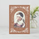 Um cartão de Natal único e moderno com uma forma de foto em arco e uma tipografia estilizada moderna que se curva elegantemente em torno da sua foto, e uma ilustração original de folhagem de inverno desenhada à mão. Personalize facilmente a frente e o verso com seu próprio texto e fotos usando o modelo fornecido. Para personalizar ainda mais, clique em "Editar usando Design para Ferramenta". Sinta-se à vontade para me enviar uma mensagem para quaisquer pequenas alterações, saudações personalizadas ou alterações de cor. Compre mais cartões de Natal exclusivos em www.zazzle.com/store/nbpaperco