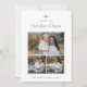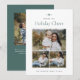 Compartilhe cartões de natal com esses Cartões de foto de Natal doces e simples, com um layout minimalista, uma mensagem personalizável e sotaques verdes esfestivos. Adicione três fotos favoritas (um cenário e dois quadrados) e personalize sua assinatura de cartões de natal e de família (mostrada com "Desejo que viva o feriado"). Um pequeno arco no topo completa a design. Adicione uma foto adicional e uma mensagem pessoal ao verso.