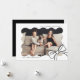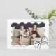 Este cartão festivo de Natal preto e branco apresenta um arco elegante e na moda e uma fotografia de centro de onda tendenciosa. O preto clássico inclui uma mensagem de saudação de Natal editável com o seu nome personalizado e tem certeza de que os amigos e a família estão prontos para celebrar esta feliz temporada de férias!