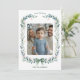 Envie desejos de feriado quente com este Cartão com fotos de Feriado de Feriado de Wreath de Aquarela, maravilhosamente desenhado. Apresentando uma charmosa camada aquosa de verde-luxuoso e bagas sagradas revestidas com um delicado arco verde, esta carta adiciona um toque elegante e festivo às saudações de sua estação. O design enquadra perfeitamente a foto de sua família, fazer ideal para compartilhar memórias especiais com entes queridos. Personalize o texto para criar uma mensagem de feriado verdadeiramente exclusiva. Perfeito para comemorações de inverno, festas de Natal, ou simplesmente espalhando alegria a familiares e amigos.