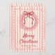 Se você está procurando por um simples cartão de Natal minimalista, bonito e facilmente editável. Este é perfeito para você. E como podem ver, a design apresenta uma mão rosa feita e desenhada rosa e arco vermelha da coroa de Natal. Com tipografia escrita a vermelho e rosa de MERRY CHRISTMAS. E seu nome familiar e ano sob ele. E no fundo você tem um parágrafo de saudação de Natal personalizável e fotos da família e fita acima. Tudo em listras vermelhas. E dentro é um quadro cor-de-rosa ondulado.