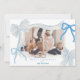 Celebre a temporada em estilo com este Cartões de foto de Natal encantador e inspirado em coquetes, com arcos desenhados à mão, cores suaves e um romântico, recheado de fita. A frente apresenta a sua imagem favorita emoldurada por quatro arcos desenhados à mão — duas fitas em negrito com listras azuis de bebê, mais dois acentos menores em azul-céu clássico e azul-claro. O dorso oferece um fundo azul gelado refrescante com um padrão de arco delicado.