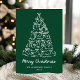Compartilhe alegria de férias com este cartão de Natal branco, não fotográfico, com uma árvore de Natal branca desenhada à mão, decorada com arcos lúdicos num fundo verde profundo. "Feliz Natal" é exibido em um roteiro alegre, com espaço abaixo para personalizar com seu nome de família e ano. As costas incluem espaço para a sua mensagem de feriado, fazer este cartão de Natal verde e branco moderno, uma forma na moda e festiva de celebrar a estação.
