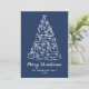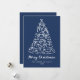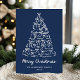 Envie cartões de natal sofisticados com este cartão de Natal que não é fotográfico, com uma árvore branca e branca desenhada à mão, realçada com arcos lúdicos em fundo de marinho profundo. "Feliz Natal" é exibido em um roteiro de na moda, com personalização disponível para seu nome de família e ano. O verso oferece espaço para sua mensagem de feriado, oferecendo uma maneira chique e moderna de celebrar a temporada.