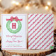Cartão De Festividades Aro de Monograma de Laço de Bolinhas Vermelho Aqua