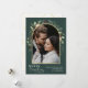 Este design apresenta um arco moderno de folhagens com uma moldura delicada dourada brilhante e um contorno branco, com uma foto vertical única. Para fazer alterações avançadas, selecione a opção 'Clique para personalizar ainda mais' na seção 'Personalize este modelo'. Aqui, você pode editar/adicionar caixas de texto, cor e fonte.