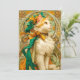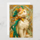 Um gato majestoso com pele exuberante e detalhada se senta graciosamente entre um arranjo ornamentado de flores e videiras giratórias, todas enquadradas em um intrincado design ao estilo Art Nouveau. O gato olha para cima com sabedoria serena, banhado em luz de ouro suave, enquanto o fundo floresce com tons ricos de pastel e terra, criando um sentido de beleza eterno e elegância natural.