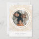 Uma coleção de cartões de Natal minimalista e ligeiramente retrô em branco e dourado no estilo art déco, com impressionantes molduras de explosão solar. Fácilmente personalizável com a foto da sua família e mensagem de saudação.