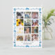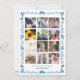 Este cartão de Natal "oh que ano" fofo com 12 fotos em colagem apresenta um fundo branco com coelho de arte popular e padrão de folhas em azul. Personalize-o para suas necessidades. Você pode encontrar produtos correspondentes na minha loja.