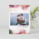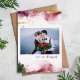 Cartões de foto de Natal impressos personalizados modernos com um modelo DIY simples para personalização. Este design de arte tem um fundo de abstrato de pintura em tons de burgundy, verde e ouro. Adicione a foto da sua família, saudações pessoais, nomes e o ano. Use as ferramentas de design para editar as fontes e as cores. O verso tem espaço para adicionar mais fotos e texto.