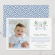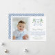 Design de cartão de Natal Preppy Happy com uma planta de banana, em um vaso azul e branco. Na frente, há um formato de brasão com espaço para um monograma de letra única. Os elementos de aquarela foram originalmente pintados à mão por mim em papel 100% algodão antes de serem digitalizados e organizados/estilizados digitalmente (o formato do brasão é de outro artista). O verso apresenta um padrão Greek Key, criado digitalmente por mim. Você pode alterar a cor de contraste no verso (atualmente um azul médio) alterando a cor do fundo no verso (clique para personalizar ainda mais abaixo da área de personalização de texto. Isso o levará para a ferramenta de design.